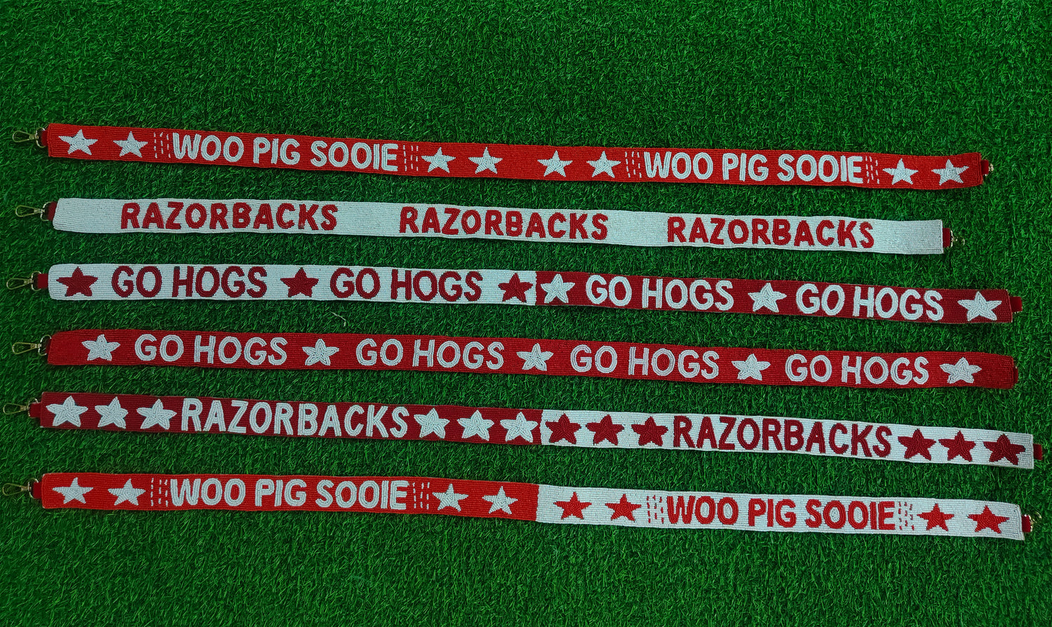 Beaded Purse Strap – "Go Cobras," "Go Bengals Who Dey," "Go Hoosiers," "Eagles," "Go Jags," "LT Cavs," "Warriors," and "Hail to Pitt!"